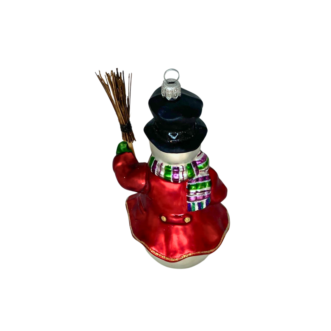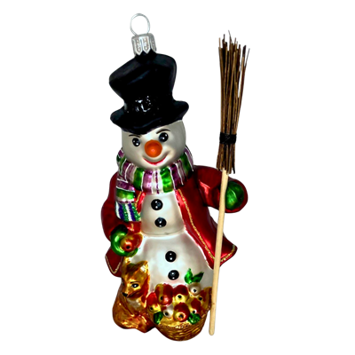Meget Flot Snemand med Kost - Kosten er lavet i træ og limet på Snemanden